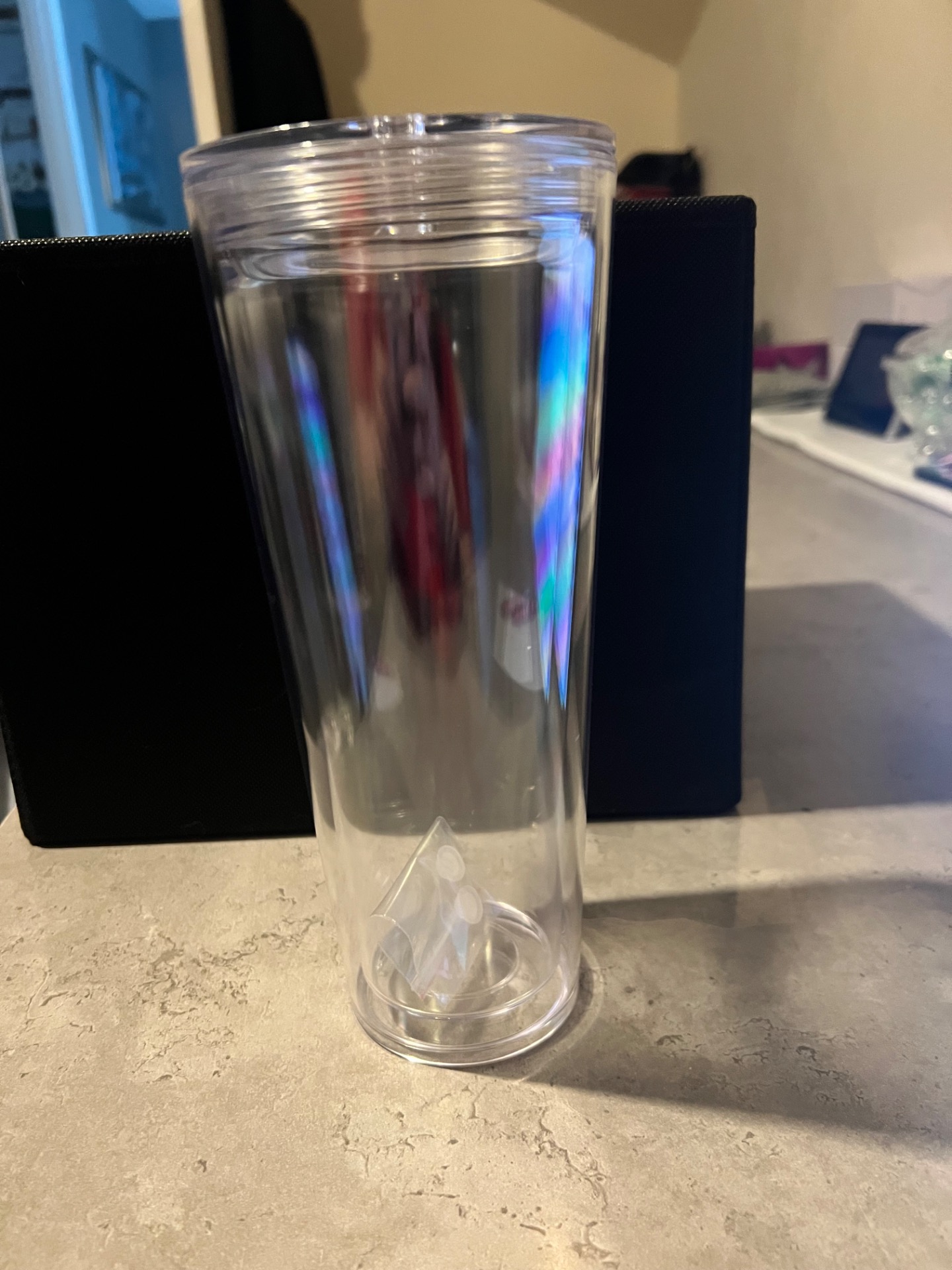 24oz tumbler acrylic pre drilled snow globe comes with straw, lid and stopper.