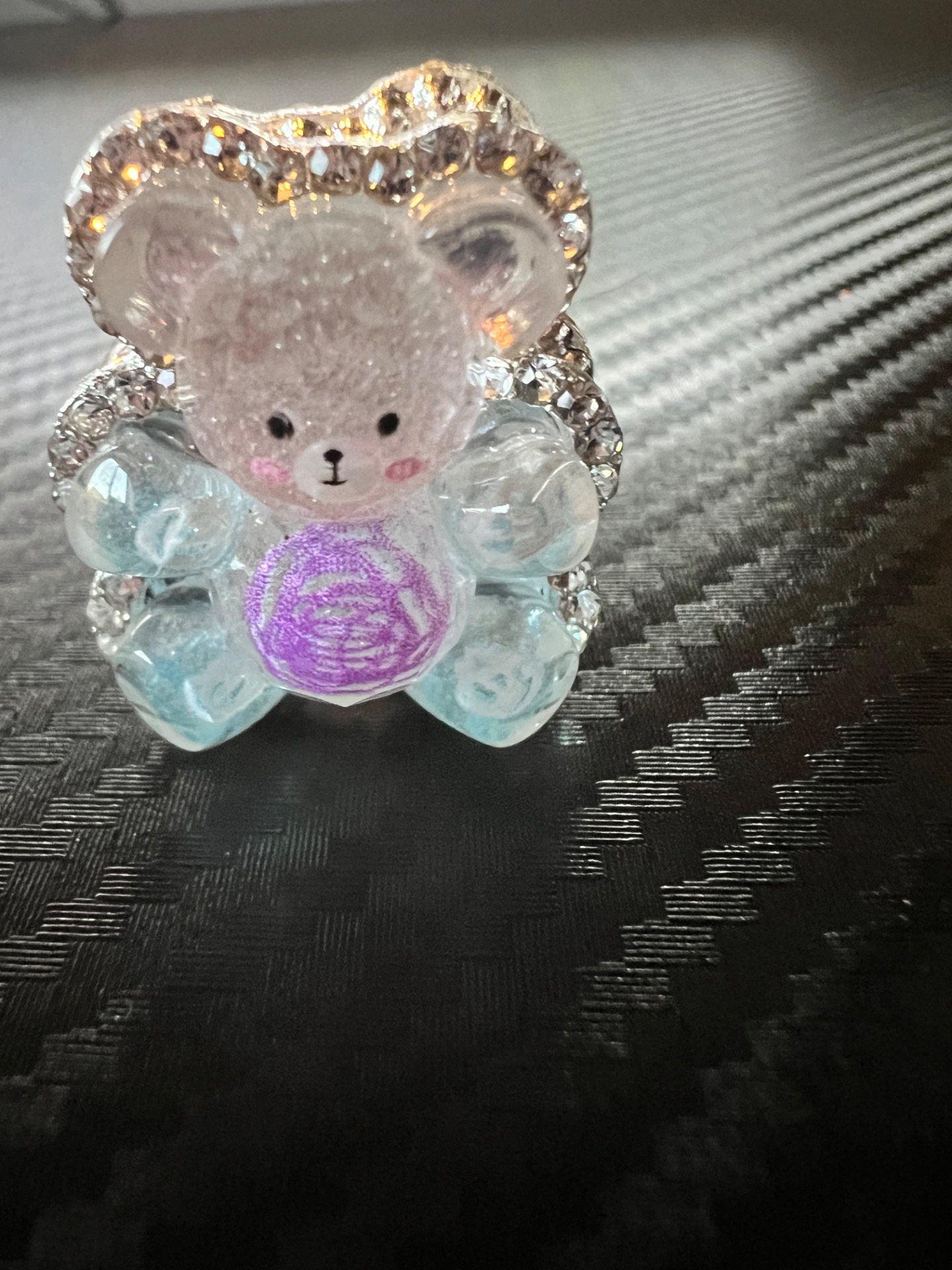 Multi coloured glass teddy bear.